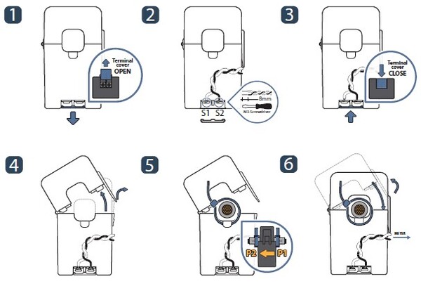 • Klappscharnier, Ausgangsklemmen, sicheres Einrastscharnier, der Snap-in-Klappmechanismus erleichtert die Installation in bestehende Anlagen